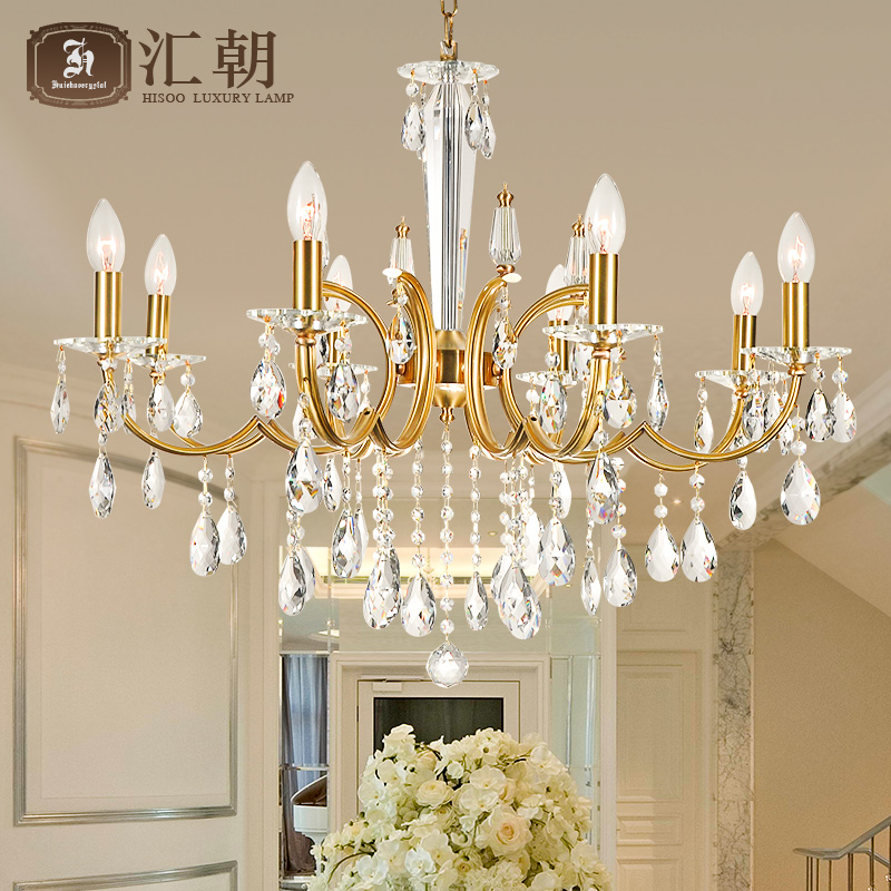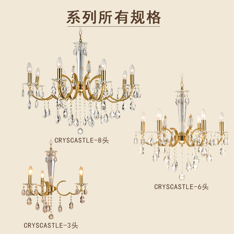欧式全铜吊灯 客厅水晶吊灯美式铜灯大气复古别墅卧室蜡烛灯1105