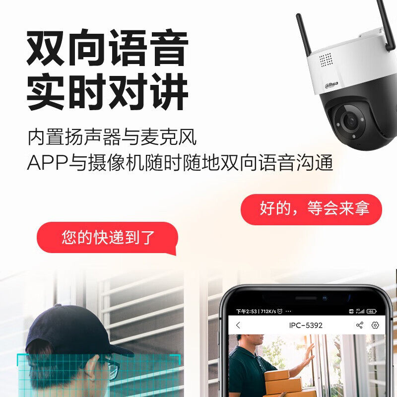 大华摄像头200/400万无线全彩监控球机室外防水高清远程监控器