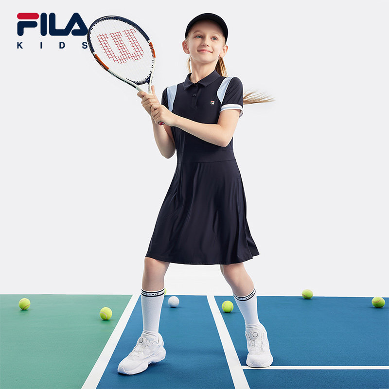 FILA斐乐儿童网球运动裙子夏季新款女中大童透气针织polo连衣裙潮