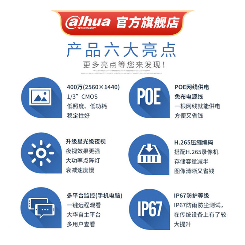 大华400万poe网络摄像头星光夜视室外摄影监控器DH-IPC-HFW2433M