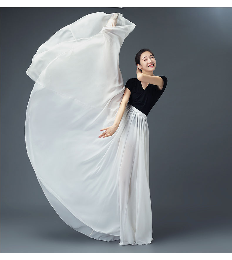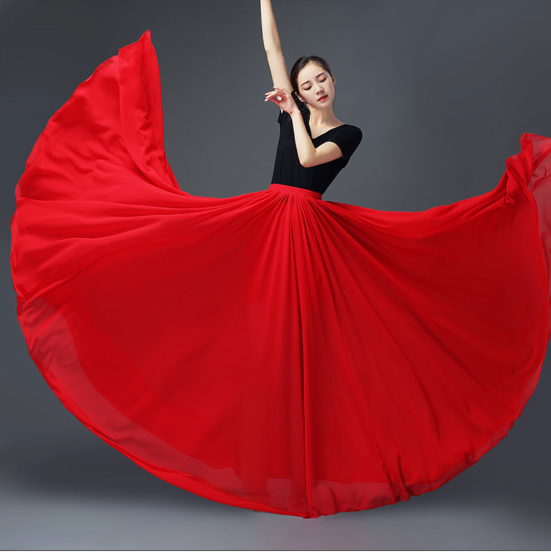 古典舞蹈练功纱裙女半身飘逸雪纺新疆跳舞大摆长裙子720度演出服