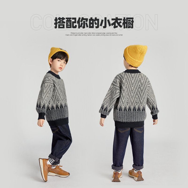 男童撞色毛衣秋冬季2025新款中大童帅气洋气休闲半高领针织衫上衣