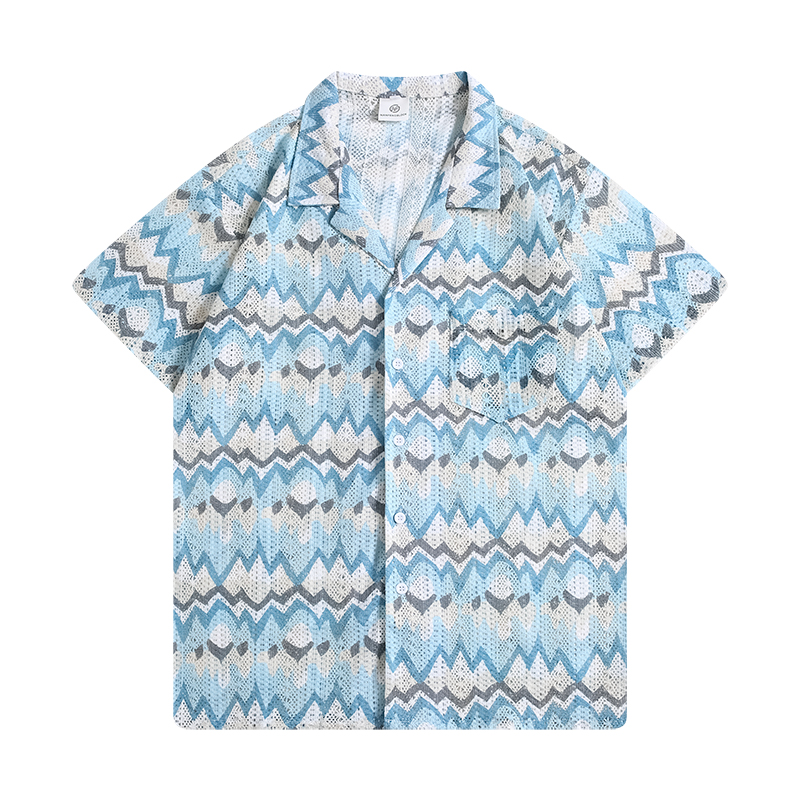 BOYUE帛跃夏威夷镂空短袖衬衫度假风波浪撞色休闲薄款沙滩服男女