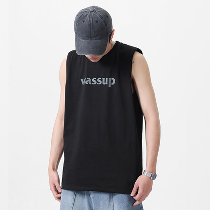 WASSUP字母潮牌纯棉背心上衣