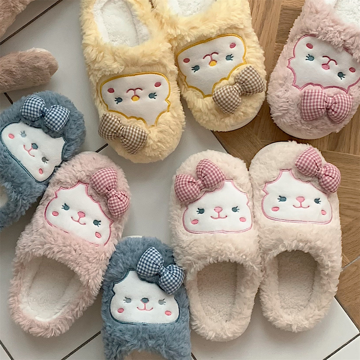 细细条 棉拖鞋女冬可爱少女心ins学生宿舍毛绒绒半包跟保暖居家鞋