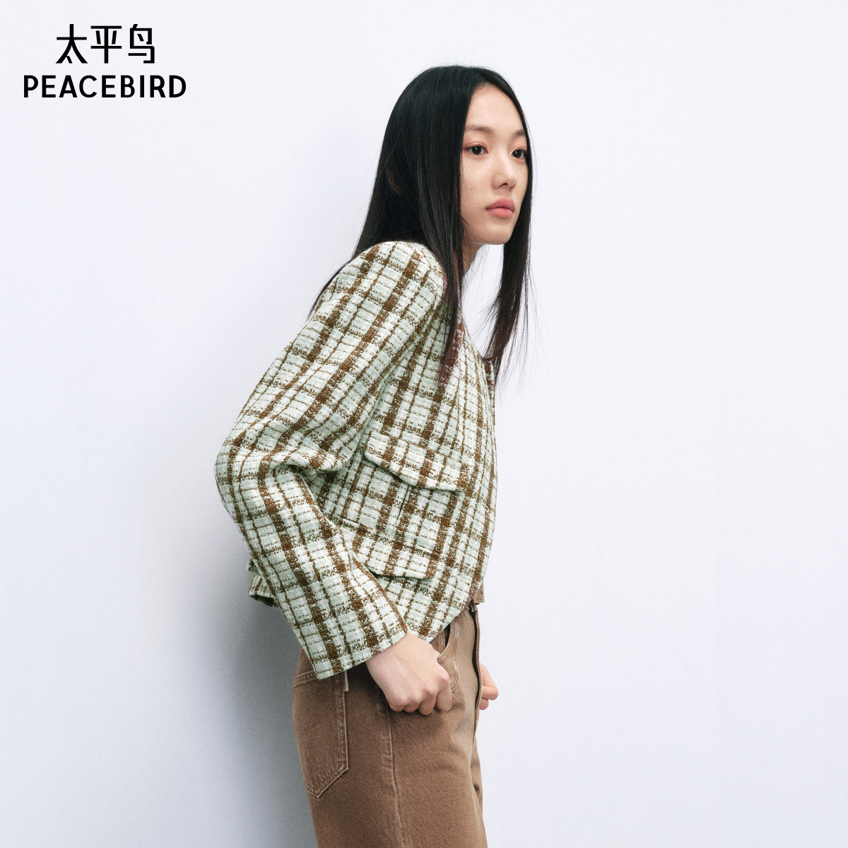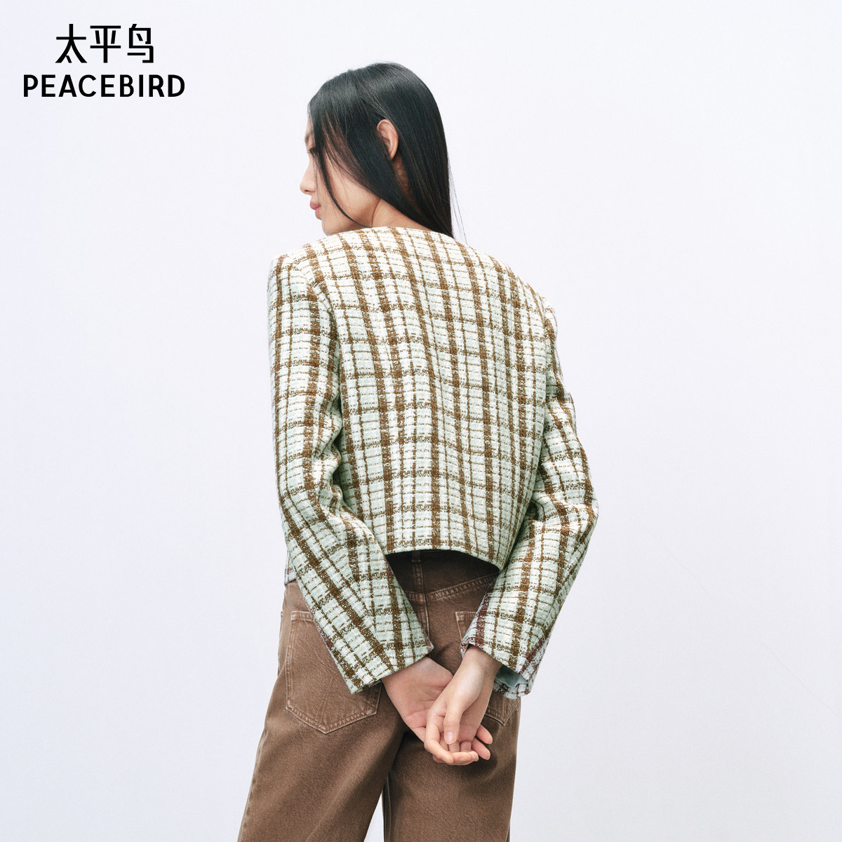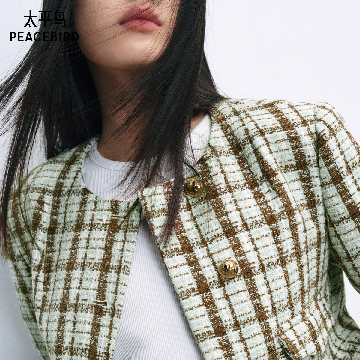 【张婧仪同款】太平鸟小香风格纹外套女24年春新款A1BBE1241