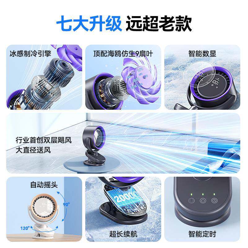 2025桌面摇头风扇usb迷你台夹两用壁挂静音无叶循环夹子风扇