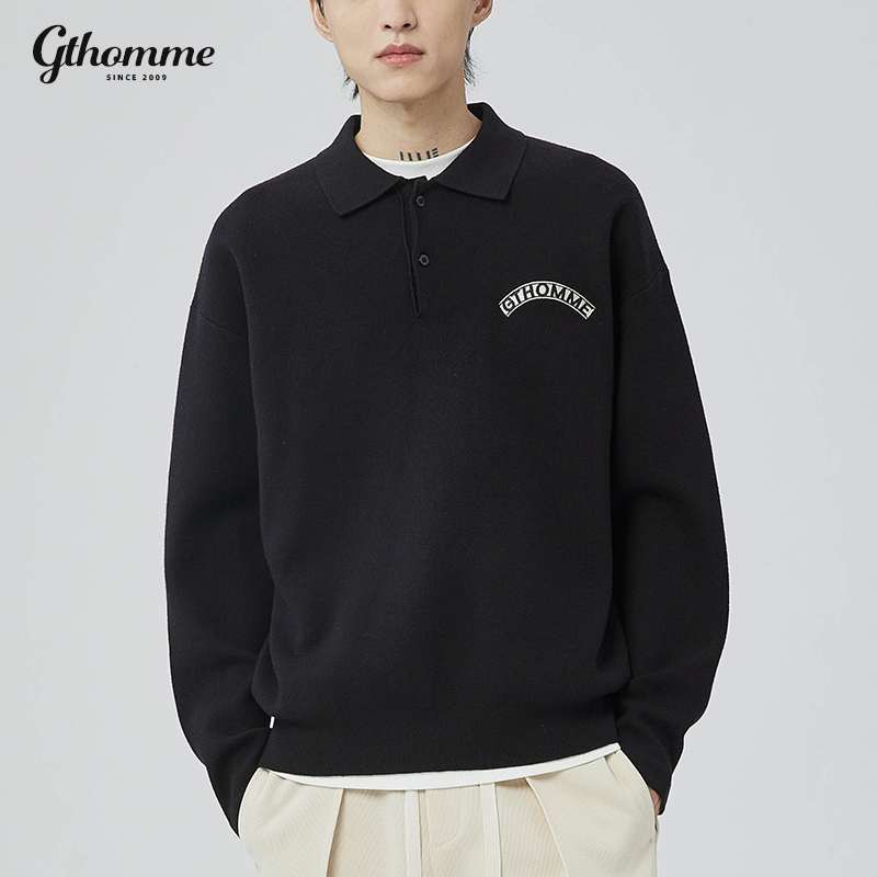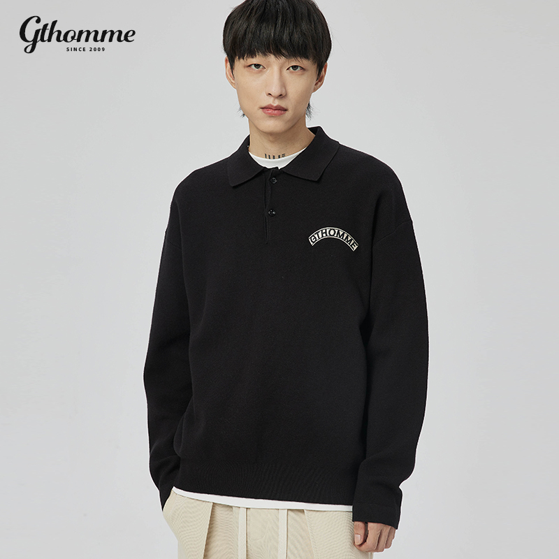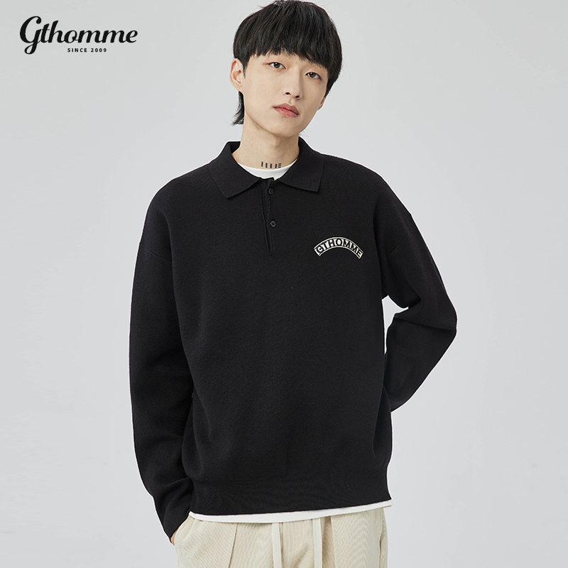 秋冬季毛衣男款polo领长袖针织衫宽松休闲套头翻领慵懒潮外套毛衫