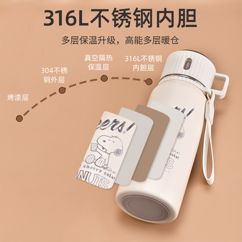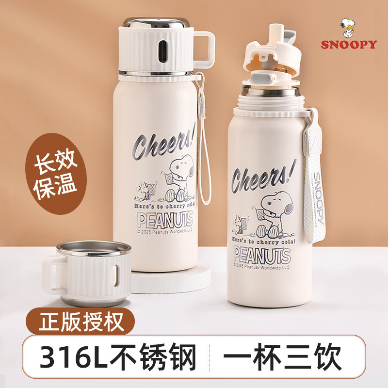 史努比保温杯男女小学生吸管水杯316l不锈钢儿童直双饮壶上学专用