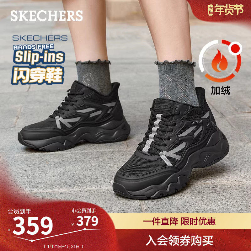 斯凯奇闪穿鞋|冬季款女鞋老爹鞋休闲运动鞋加绒保暖高帮鞋熊猫鞋