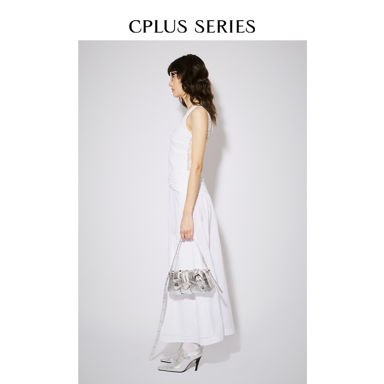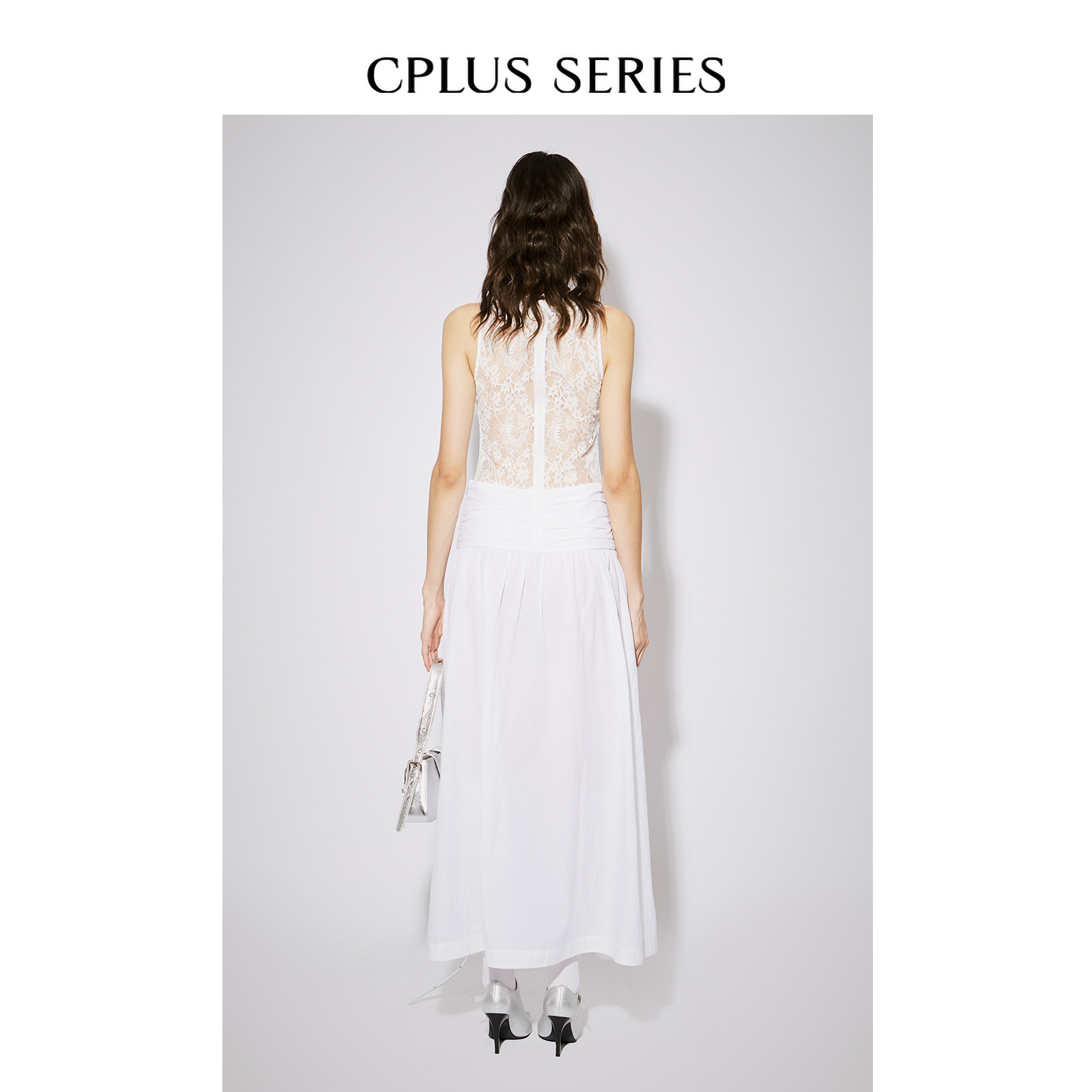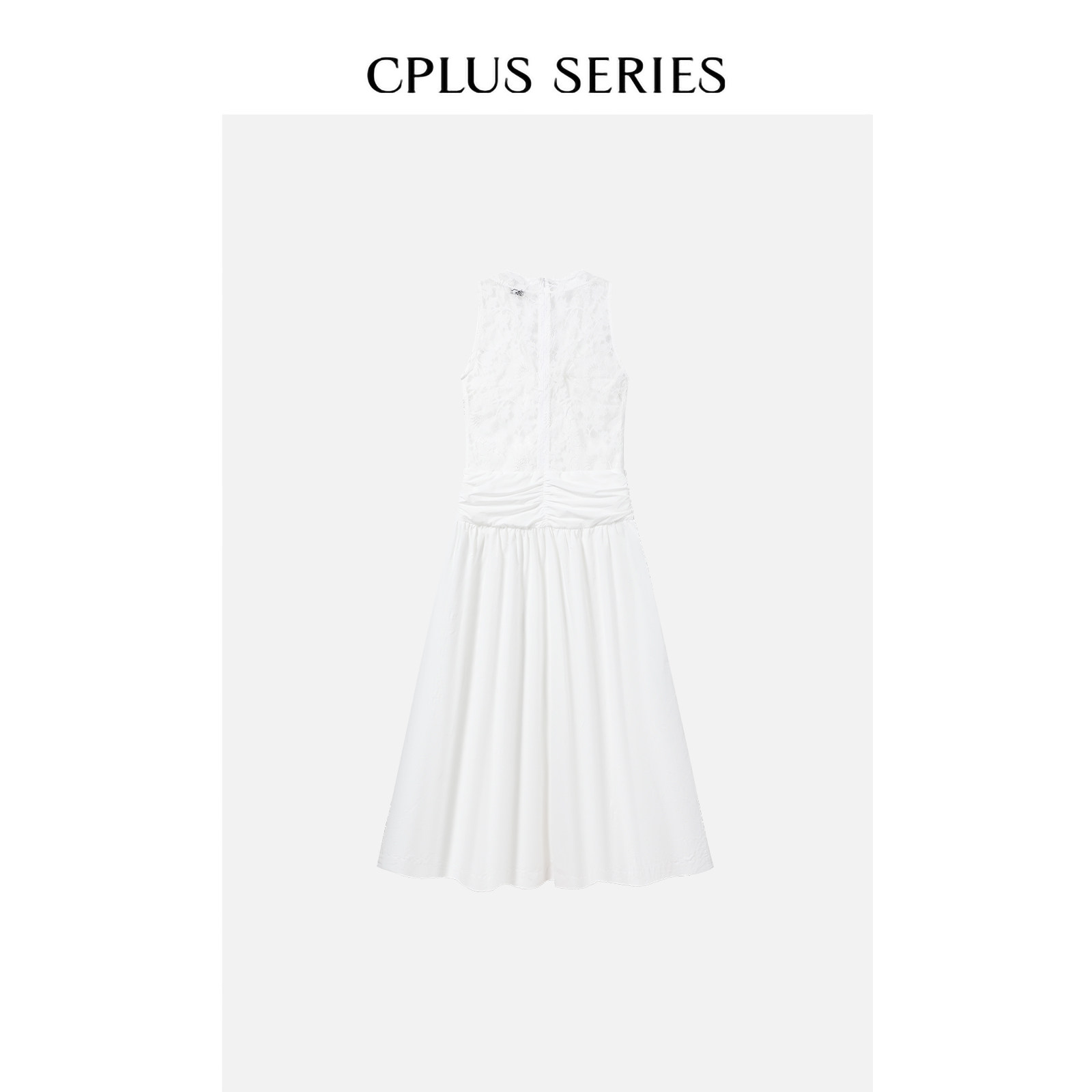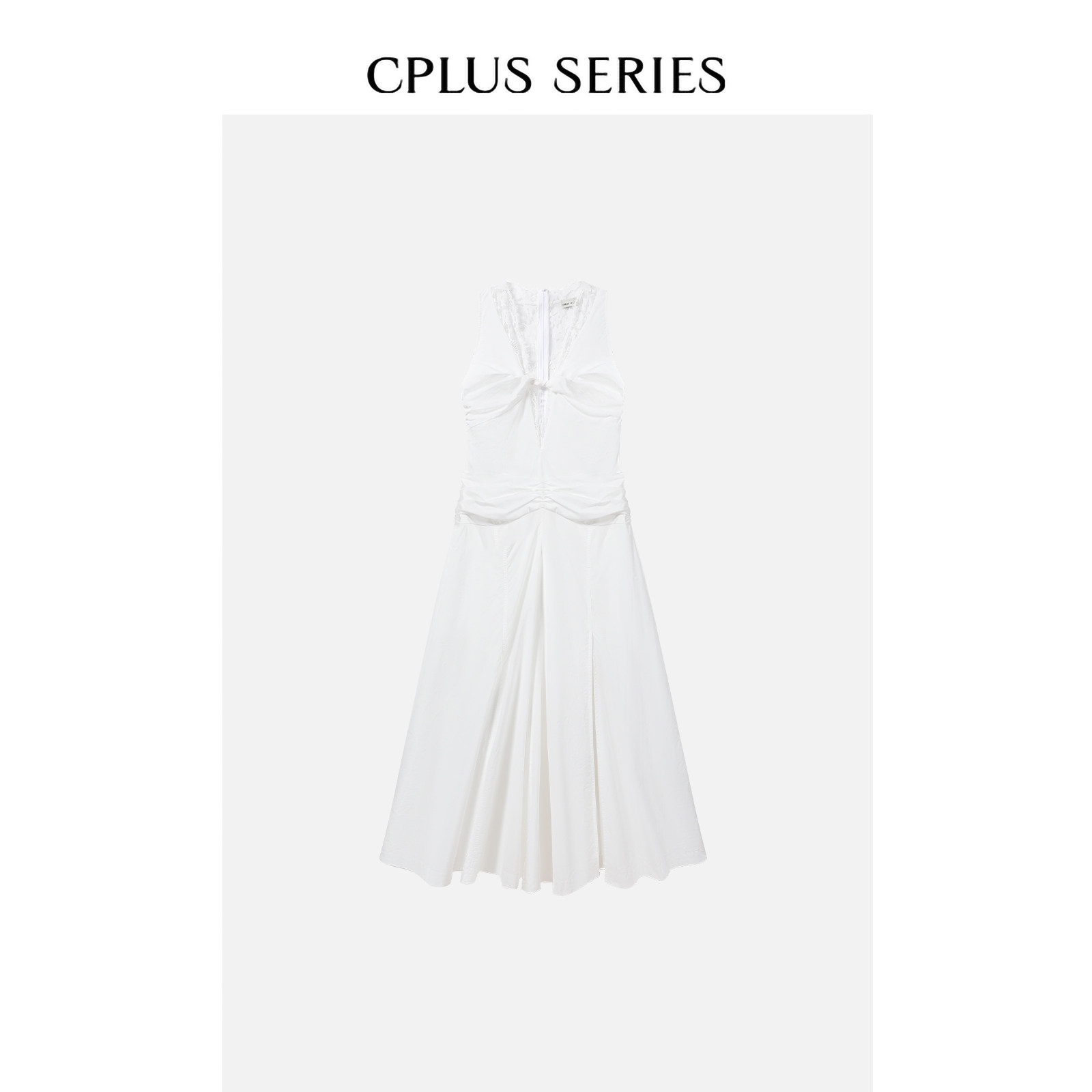 【金晨同款】纽结蕾丝拼接褶皱渡假领证女神连衣裙