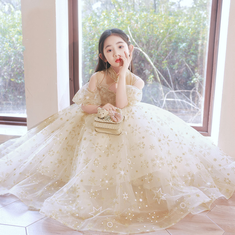 女童晚会礼服公主裙儿童洋气花童生日小女孩主持人走秀钢琴演出服