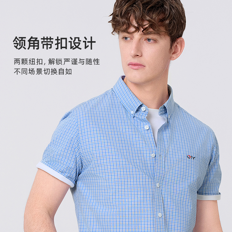 金利来GY纯棉高级感男士衬衫2025春夏新款短袖通勤休闲男衬衣