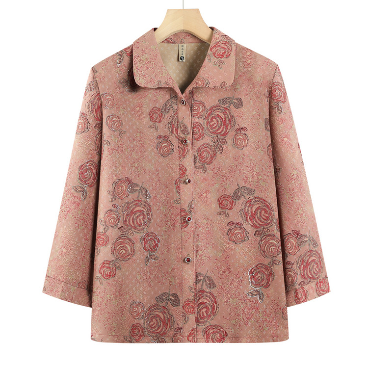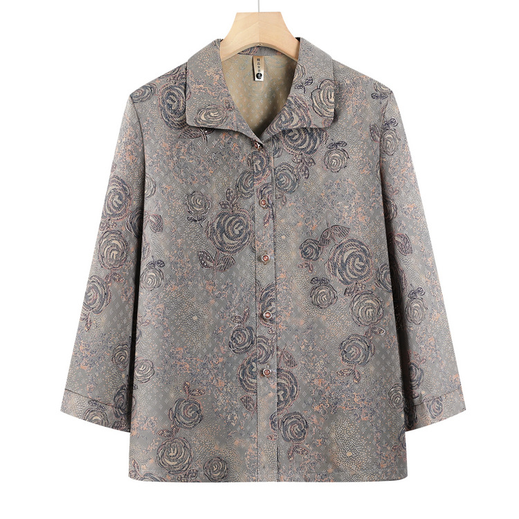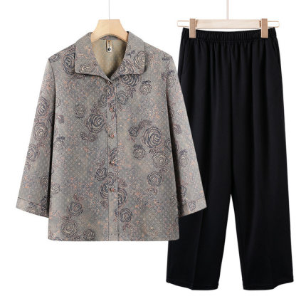 奶奶夏装衬衫女中老年人夏季七分袖套装妈妈翻领上衣老人太太