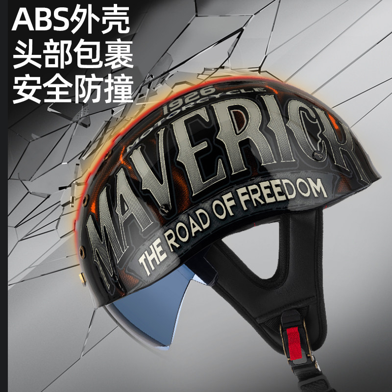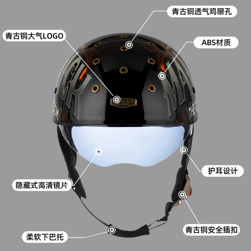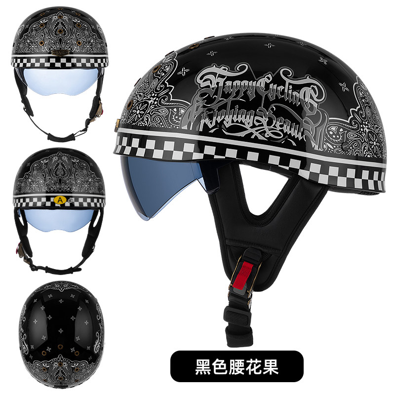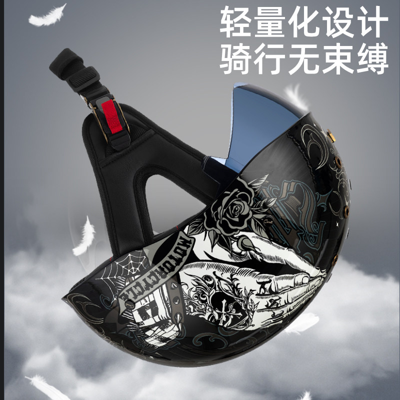 夏季摩托车复古半盔透气头盔电动车超轻哈雷巡航3C认证男女瓢盔