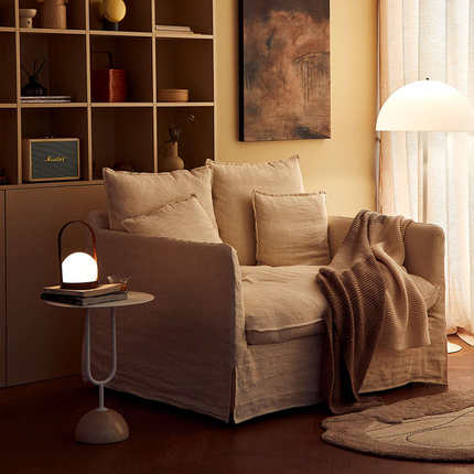 格度裙摆绵麻沙发床布艺小户型现代简约客厅卧室贵妃躺椅单人位
