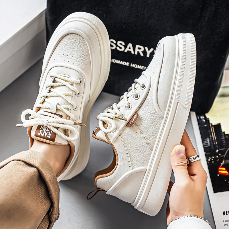 男鞋冬季2026新款韩版百搭皮面工作小白鞋青少年学生运动休闲板鞋