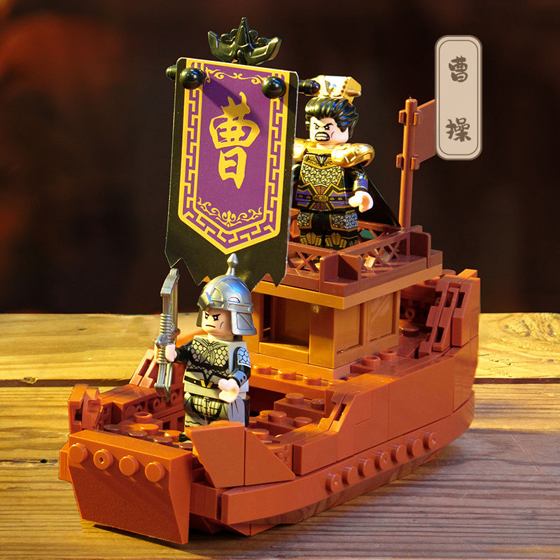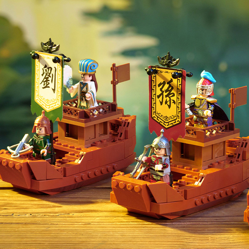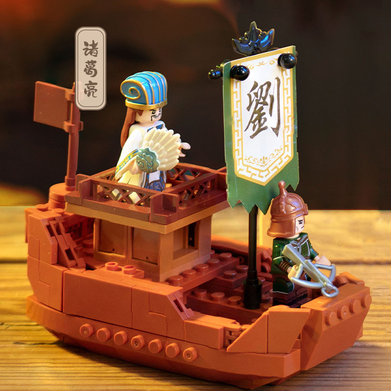 猫的天空之城苏州博物馆三国赤壁之战战船拼装积木盲盒套装礼物