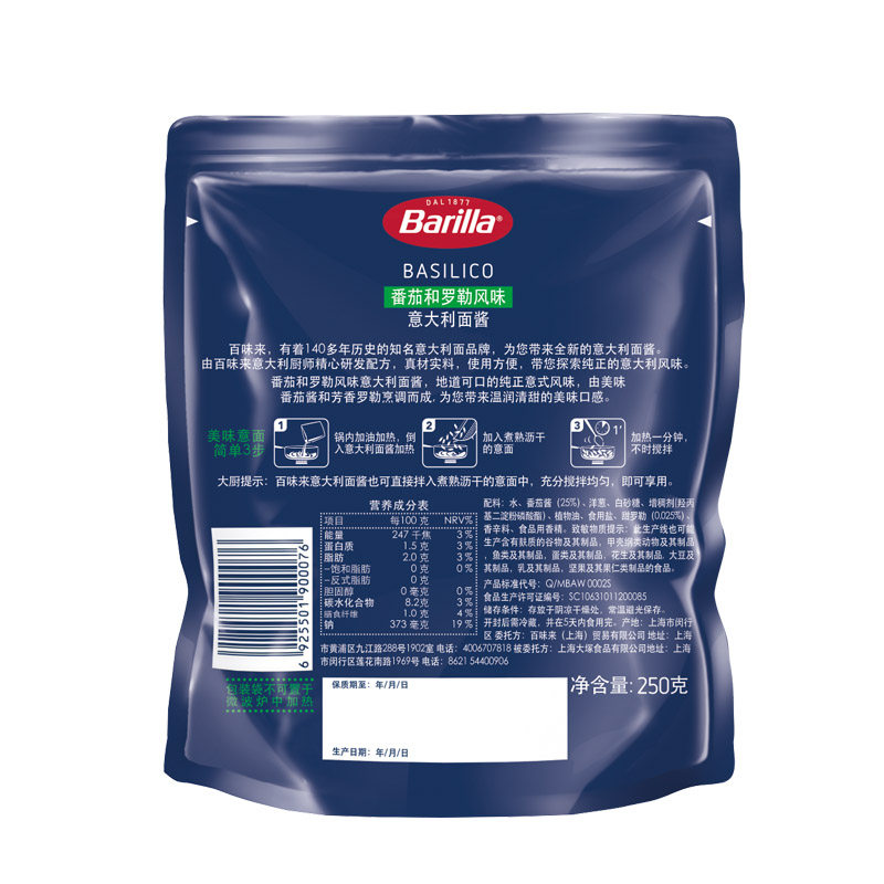 百味来传统5号直形意大利面/牛肉罗勒番茄酱意面意粉酱料组合套装