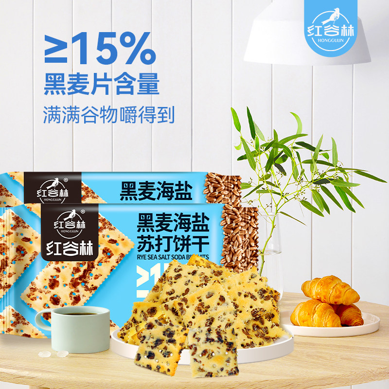 红谷林黑麦海盐苏打发酵饼干咸味0蔗糖网红零食营养休闲食品小吃