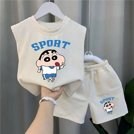 夏季男童背心套装薄款儿童24新款卡通无袖运动休闲痞帅透气两件套