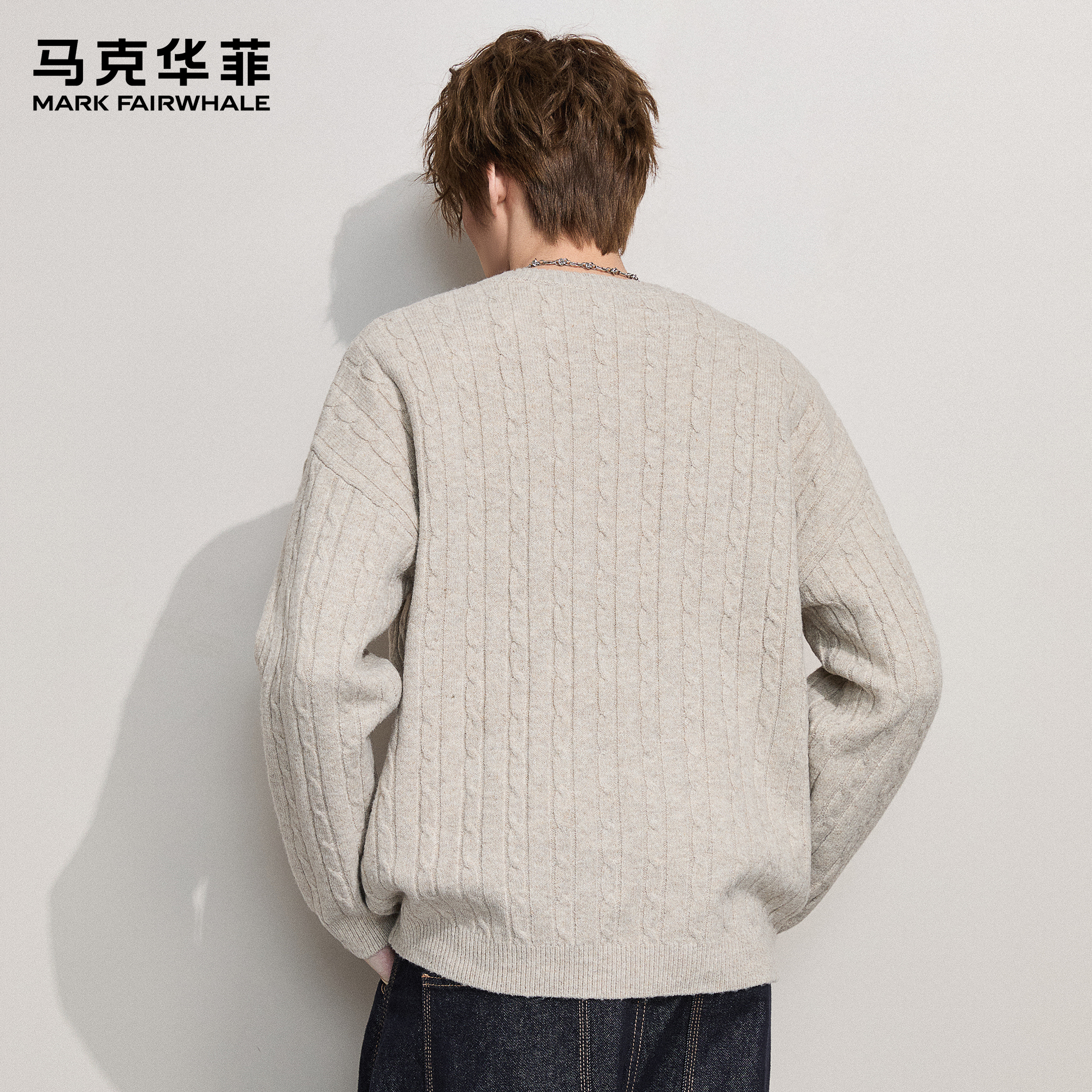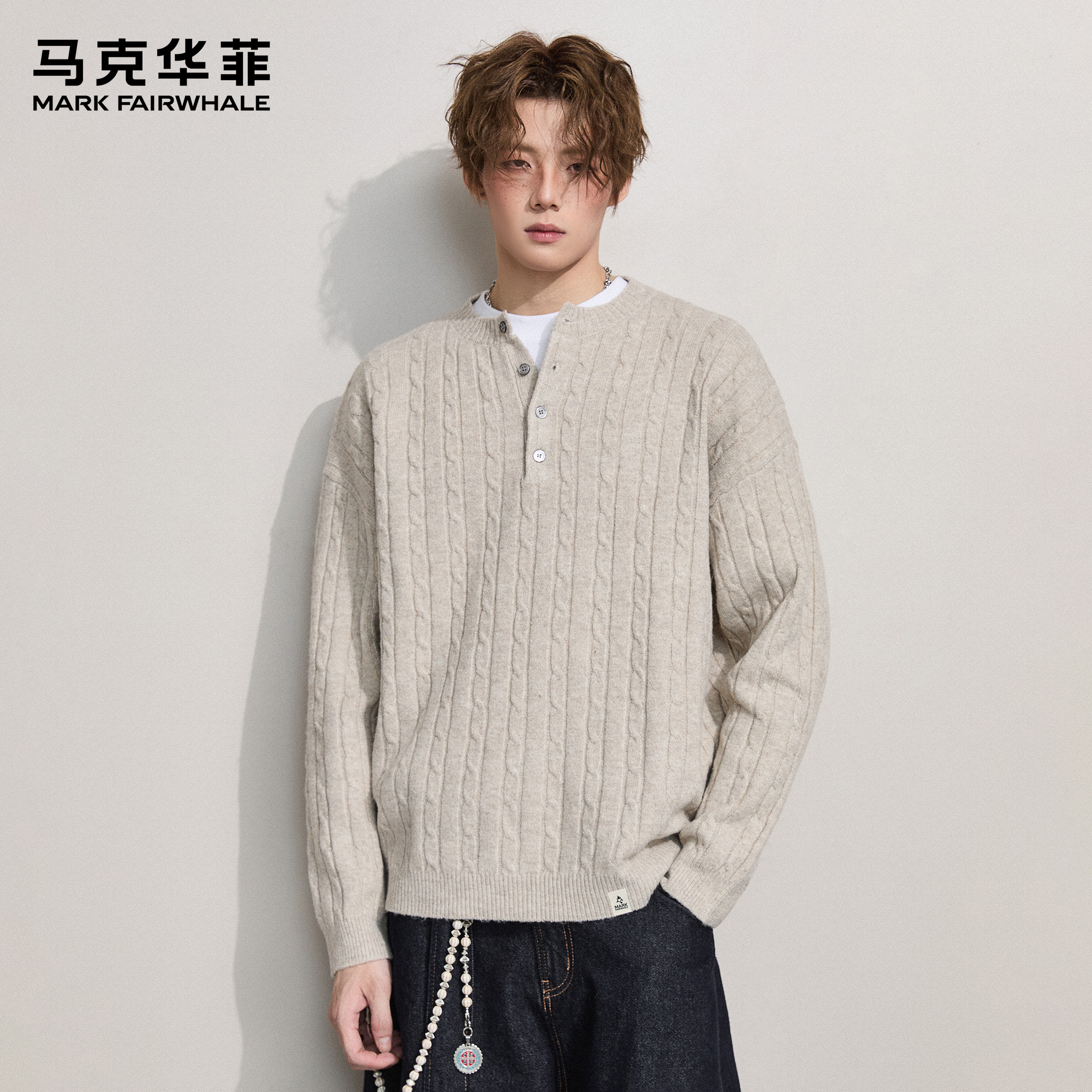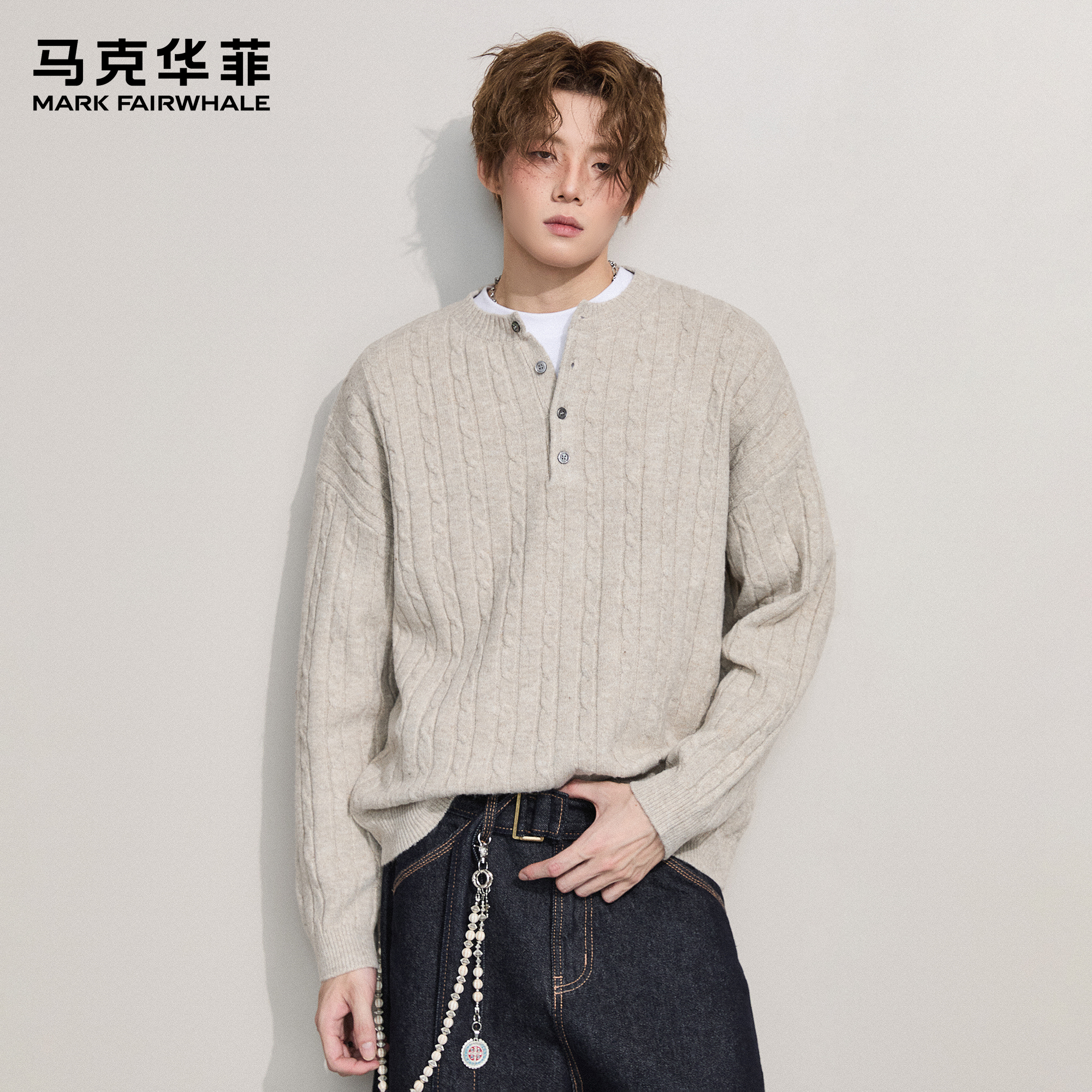 马克华菲针织衫男秋冬新款潮牌美式麻花高级感重磅保暖亨利领毛衣