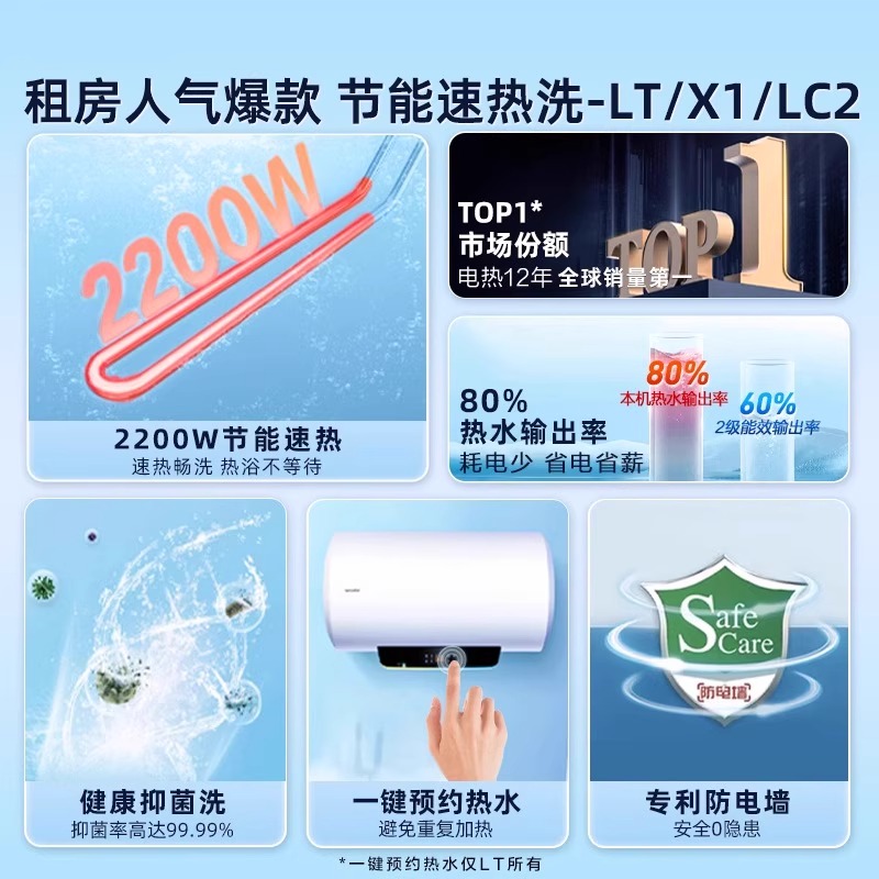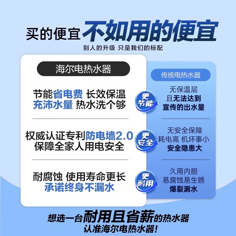 海尔电热水器统帅40L家用租房小型卫生间洗澡50L80L二级能效60升