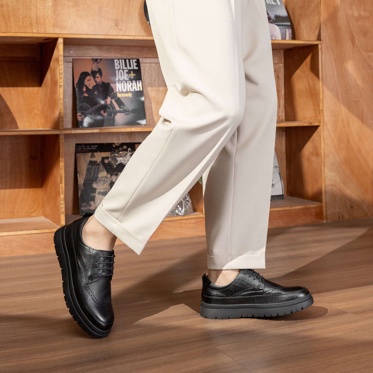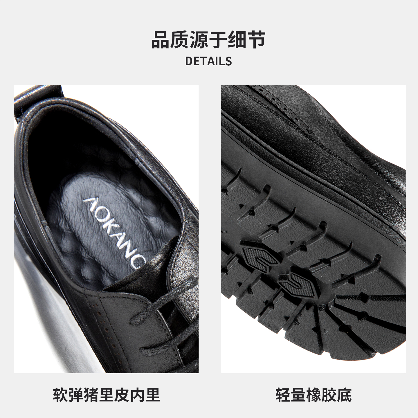 奥康秋季新款男鞋正装皮鞋布洛克皮鞋经典复古厚底增高工装皮鞋
