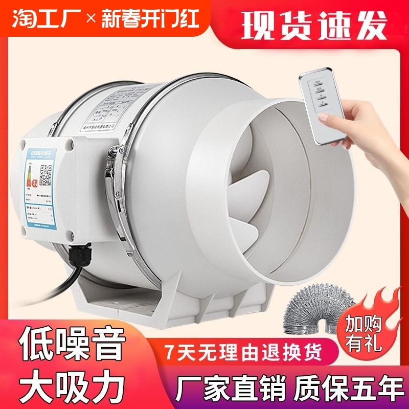 强力管道增压排气扇卫生间大功率换气扇厨房家用油烟机工业抽风机