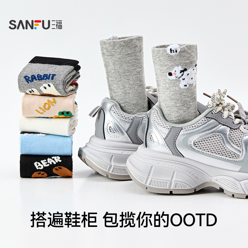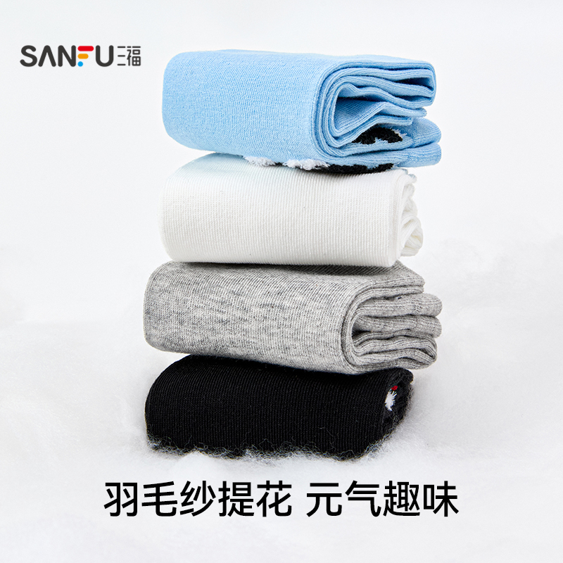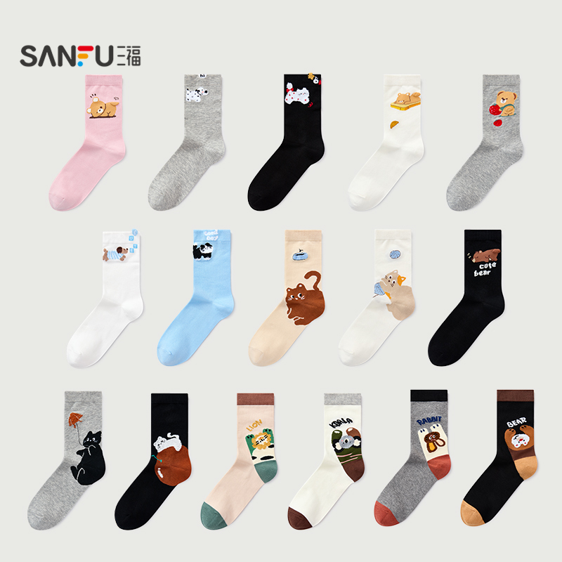 三福 女短筒袜单双装 趣味可爱棉质柔软舒适女袜袜子508142