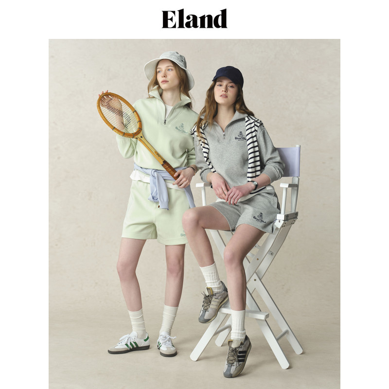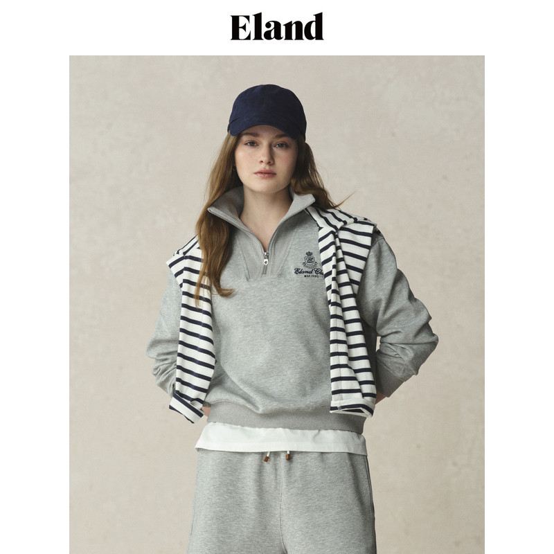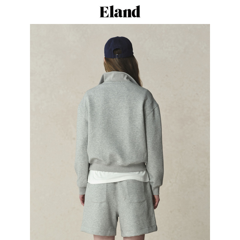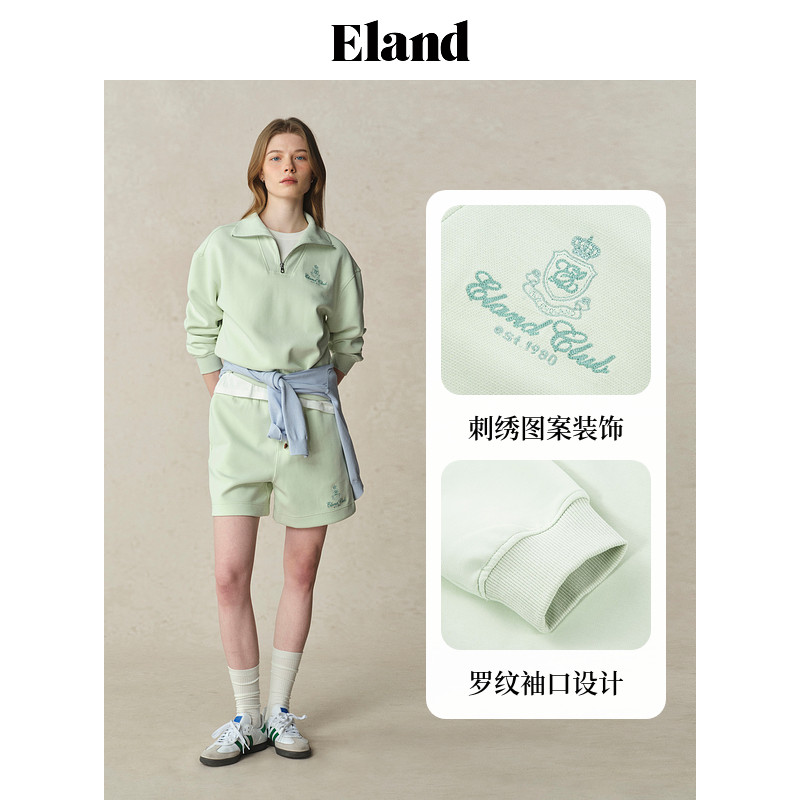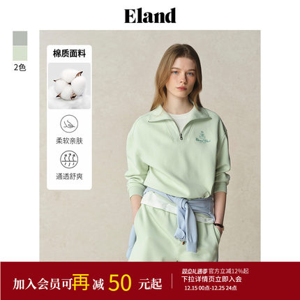 Eland衣恋卫衣女纯色运动风可立领棉感舒适长袖上衣2025夏季新款