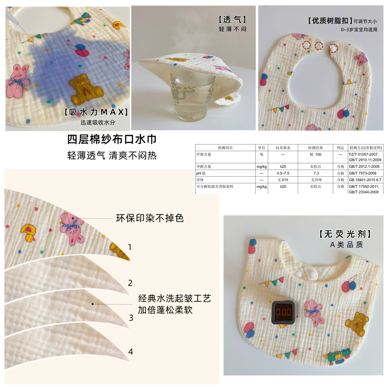 九个蜜瓜围嘴透气纯棉纱布口水巾