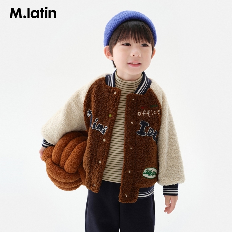 马拉丁童装儿童棉服24冬新款男小童贴布绣花保暖仿羊羔毛棒球外套