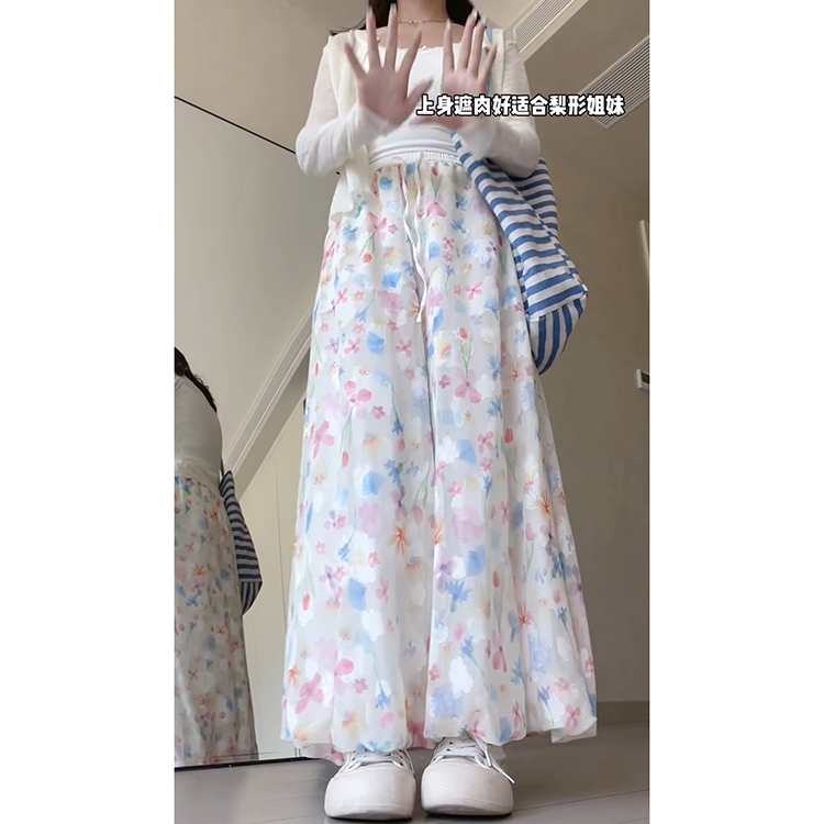 森系小清新碎花阔腿裙裤女夏季2025新款慵懒感高腰冰丝九分花苞裤