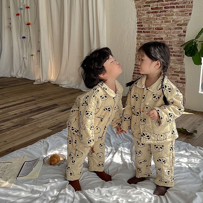 儿童睡衣秋冬季加厚款男女童纯棉宝F宝加绒三层夹棉家居服套装韩
