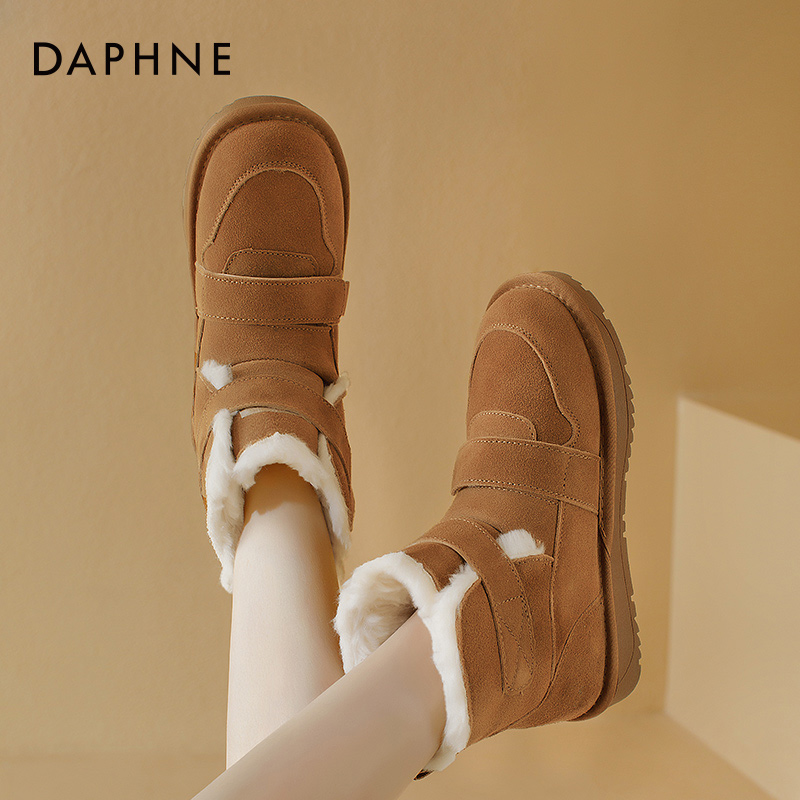 达芙妮魔术贴雪地靴女冬季加绒保暖棉鞋2025新款加厚底面包靴防滑