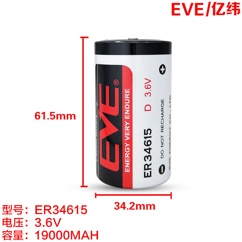 EVE亿纬锂能ER34615 D型1号3.6V水表电池流量表可配带插头天然气