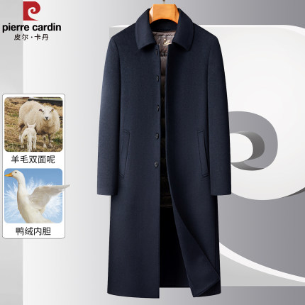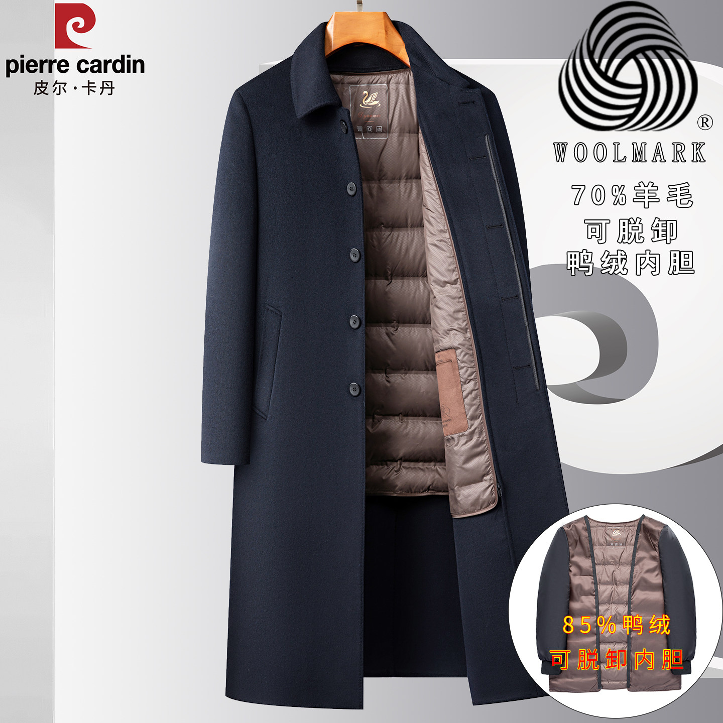 皮尔卡丹男羊毛大衣长款过膝风衣