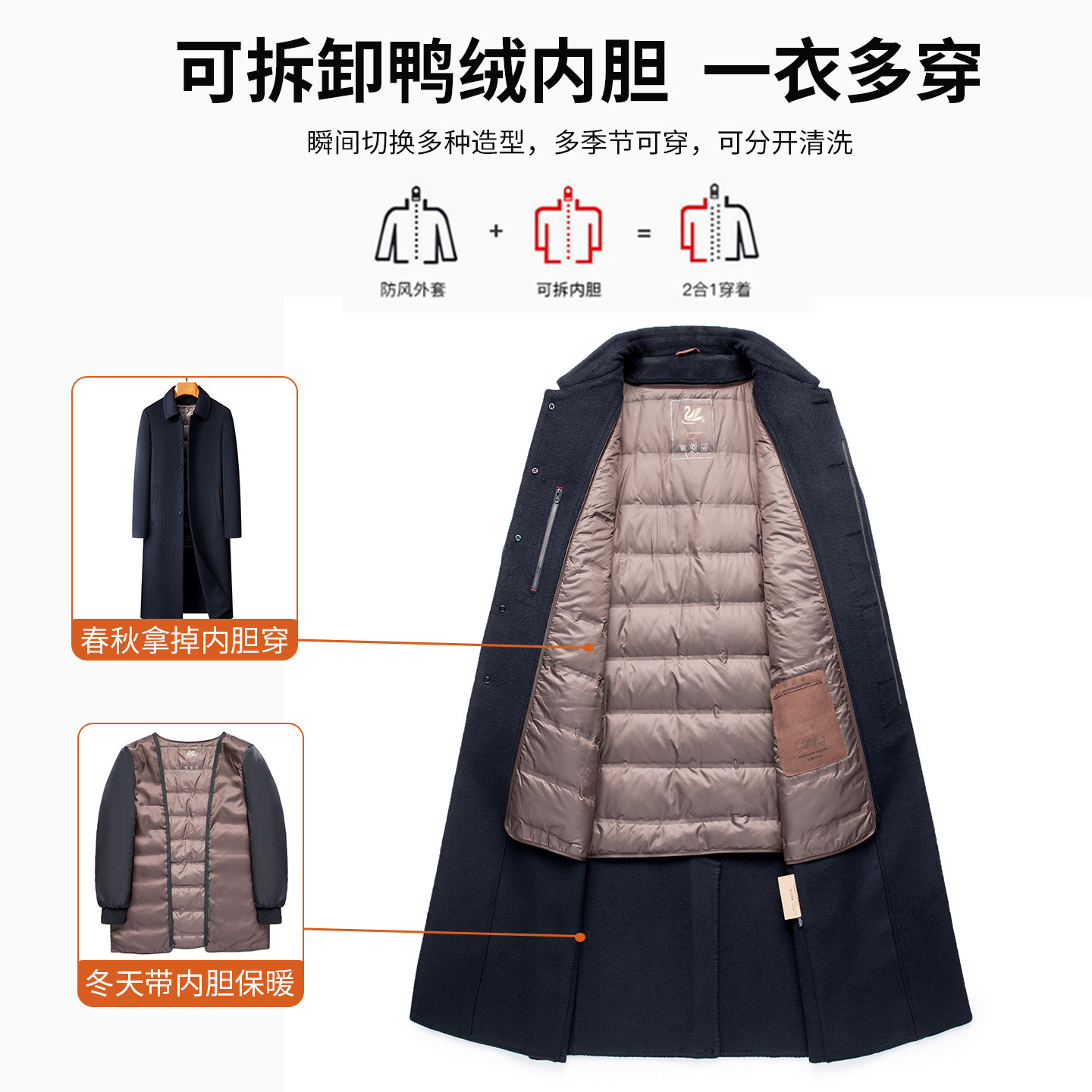 皮尔卡丹男羊毛大衣长款过膝高级感商务冬季加厚韩系毛呢风衣外套