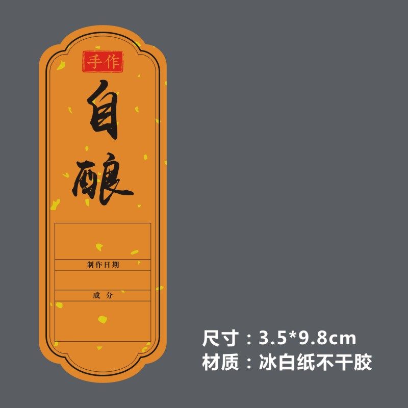 果酒自酿空白手写不干胶贴纸牛皮纸成分日期青梅高粱酒酒瓶标签E