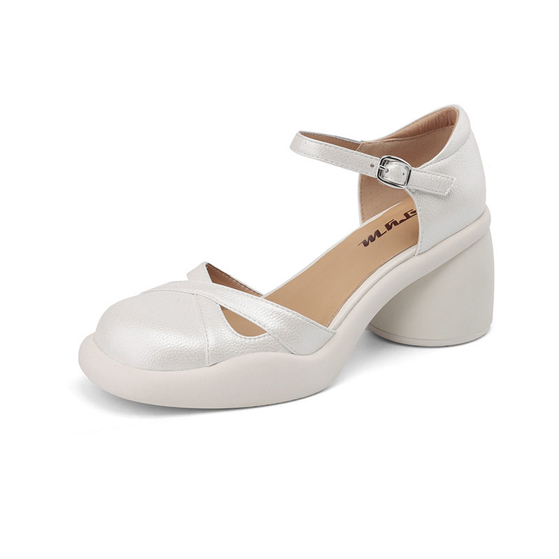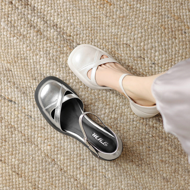 包头中空凉鞋女真皮2024年新款配裙子罗马鞋一字扣带仙女风高跟鞋
