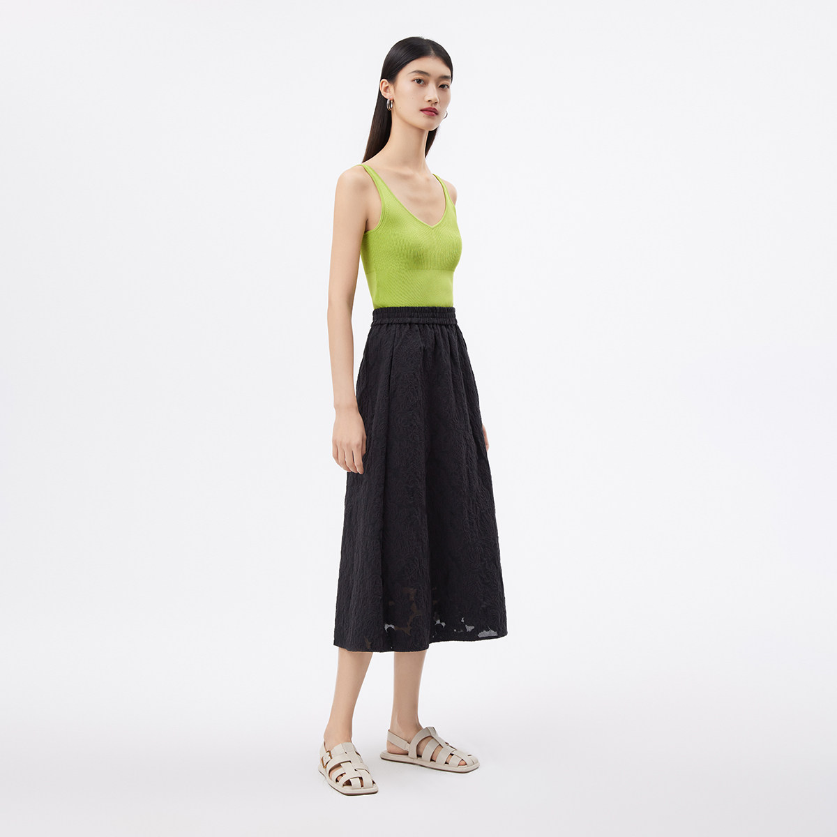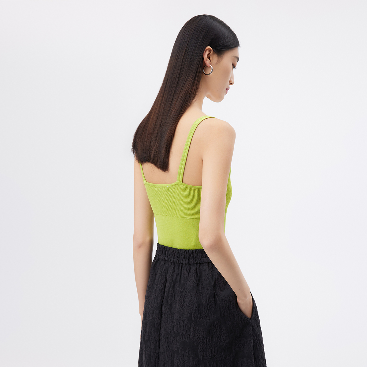 播2023夏季商场同款宽大鸡心领宽细坑纹对比吊带衫女BDQ2SD1528