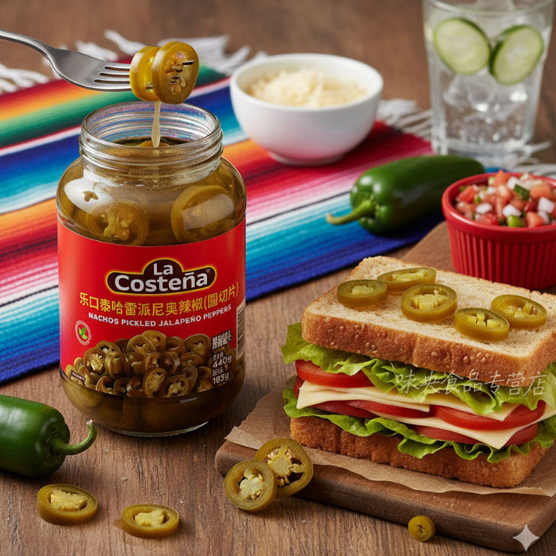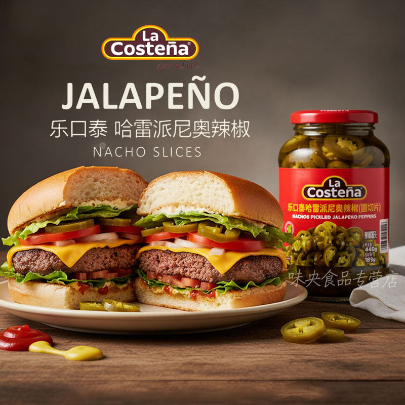 辣椒圈墨西哥进口乐口泰哈雷派尼奥辣椒440g圆切片酸辣味jalapeno