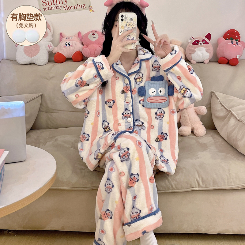 冬季睡衣女款保暖加绒加厚珊瑚绒