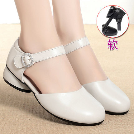 一字扣中空单鞋软底女士包头凉鞋女夏季真皮跳舞鞋中老年妈妈皮鞋