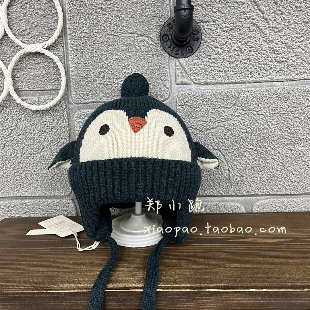 木然良品秋冬男女宝宝纯棉内衬帽子韩系企鹅护耳帽保暖帽M070L