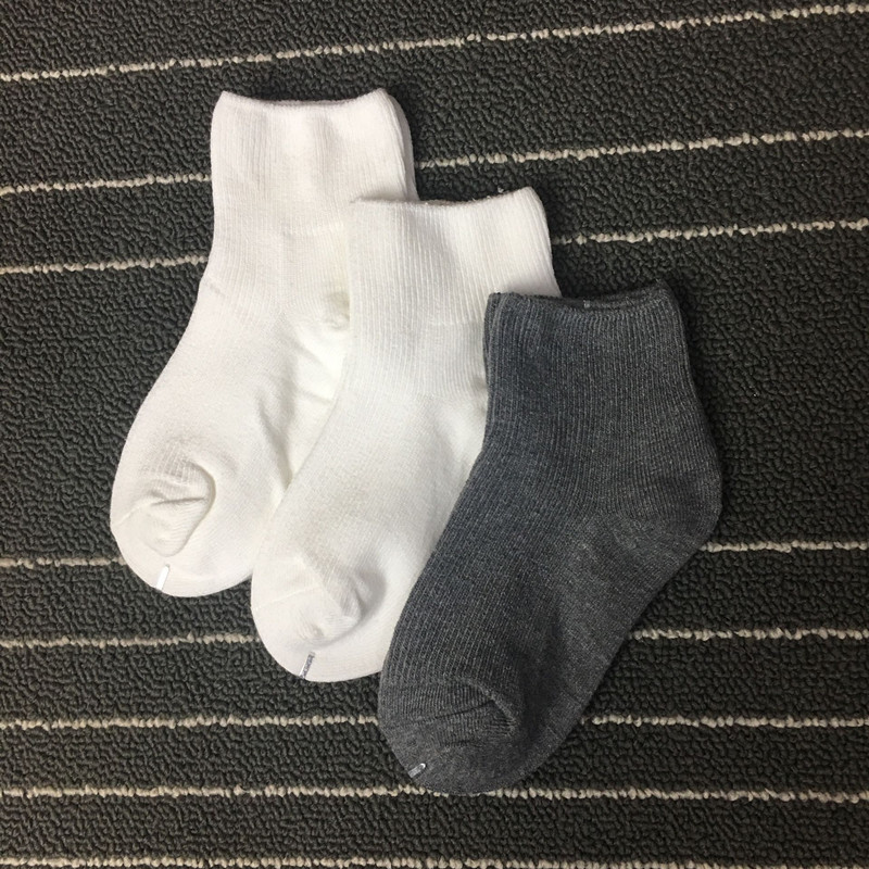 儿童袜子纯棉短袜秋季女童学生袜黑色白色双针棉袜男童女童短筒袜