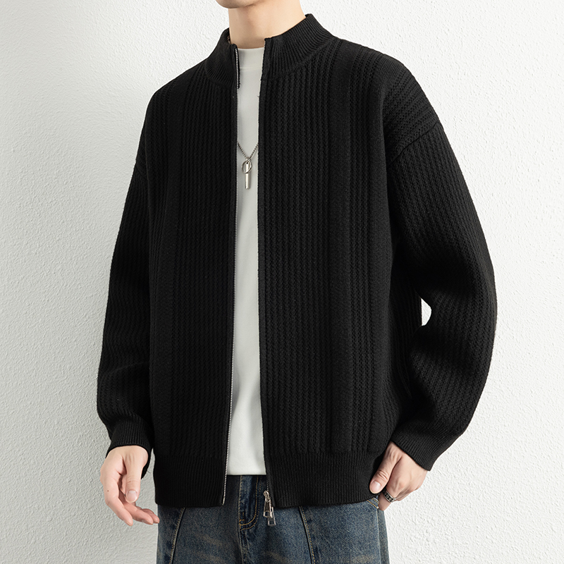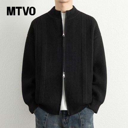 迈特优慵懒风黑色开衫毛衣男士秋冬季2025新款加厚针织衫线衣外套