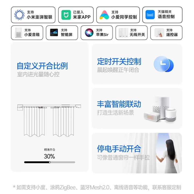 电动窗帘轨道智能静音全自动Mini小电机支持米家天猫语音蓝牙遥控