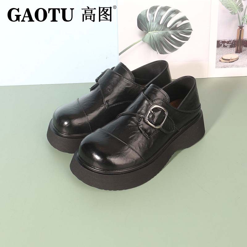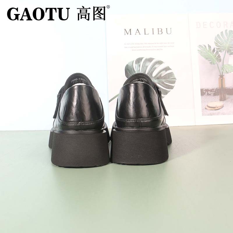 高图时尚乐福鞋女2025春季新款平底英伦风百搭深口单鞋7586-11651